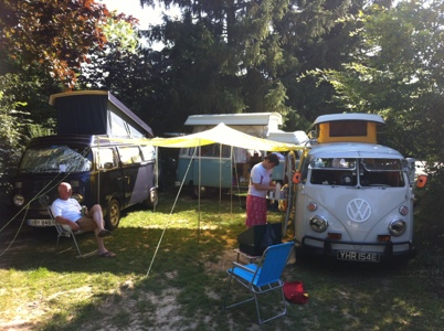 Problem of the day, a splitty overheating in 33c and not wanting to start! Remedied by resetting points which had closed up completely. Stayed at Troyes municipal camp site where we met several other T2s. The camp site was great as they had a pool which kept the kids quiet.