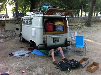 After spending a few hours cooling down in Lake Tresemino we decided to have a tinker and see if we could ease the issue of gear selection enough for us to complete our planned night drive to Ancona. We suspected the thrust bearing breaking down but we did not want to remove the engine here in the outback!