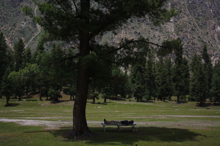 For the first time since we set off on this expedition we slept till late. We probably could have slept longer had it not been the uncomfortable rise in temperature inside our tents as the sun rose. We got out to appreciate the scenery as we had selected the camping spot almost at random. Towering mountains, tall pine, ceder, fir, juniper and oak trees, a noisy stream and proximity to good toilets made it a good choice. The kitchen crew had set up their wares and were preparing some good hot breakfast. ‘Parathas’ or fried bread with loads of eggs washed down with a hot cup of sugary tea prepared us for our days activity. For some the days activity was to crawl back into their tents for a snooze, the rest however chose to explore the area. Hammocks were strung, The plan was for a lazy day to recharge our batteries but some of the group members were ready for action so they left for the beautiful Lake Rama. The best way to get to the lake that is nestled in high mountains is to walk it. It is a steady climb that takes you to an altitude of about 11,000 ft. The view when you get to Lake Rama is absolutely breathtaking. The 2 hour trek from where we were camped is breathtaking too for those who smoked and those who had desk jobs and used the internal combustion engine to their advantage even when going to the water cooler. However if you are lucky you can hitch a ride part of the way on back of a tractor trolley that the locals use to bring granite for construction of their houses and firewood for their heating use.
