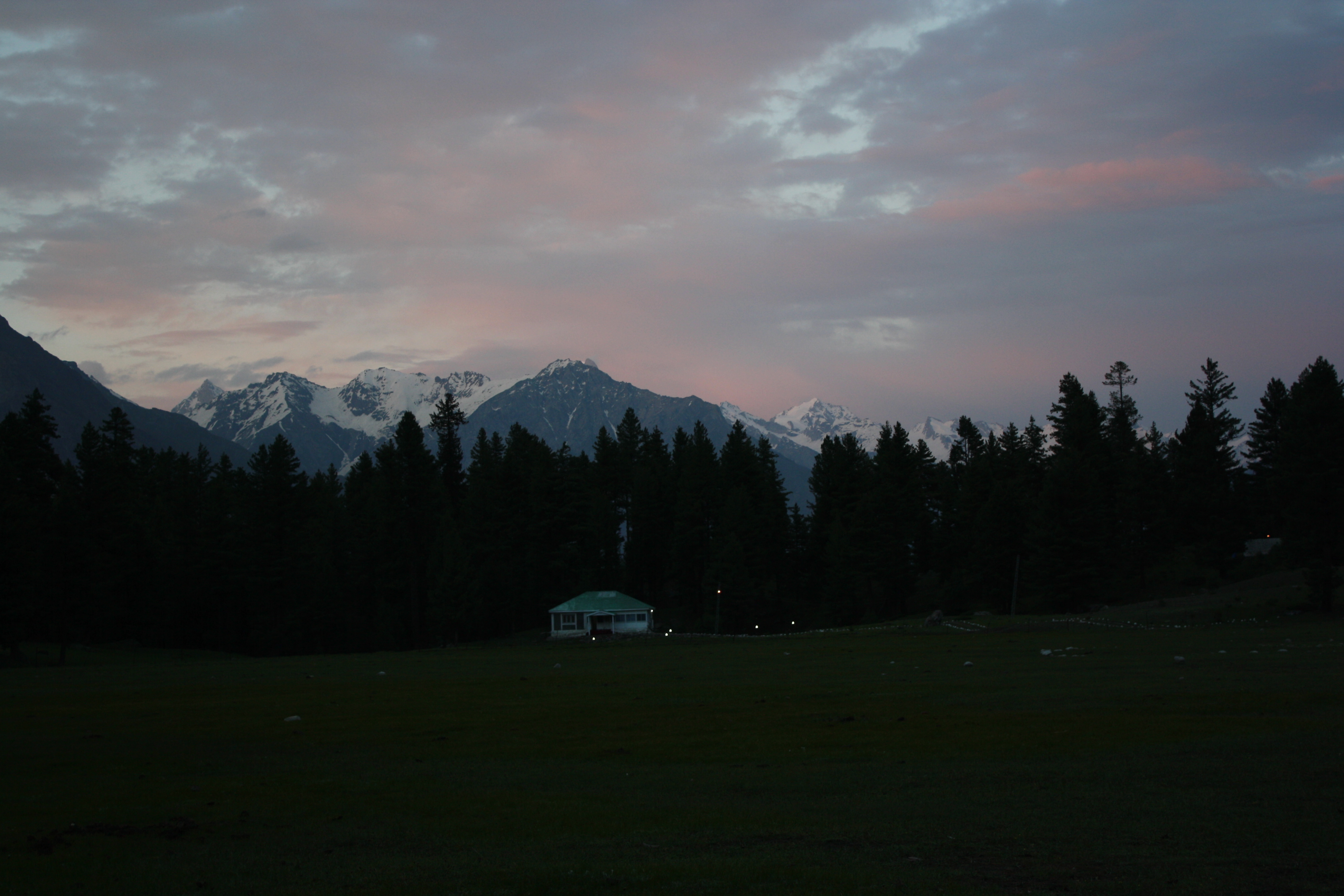 the same hut as it got darker…the mountain tops are still bright but the valley goes dark first