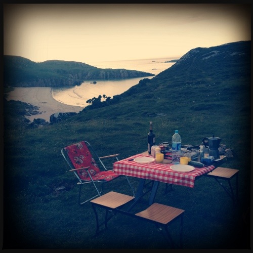 As it was still early after noon we’ve decided to head on a little further, also cause of the weather has started change foggy. So, we’ve arrived in Durness where we did some shopping and got gas. Initially we’ve planned to visit its cave, but as we’ve arrived we’ve been to lasy to climb down cliffs, but we’ve decided to go back on that beautiful spot to over-night – in hope of not anybody else has s settled there – thanx god, no and we’ve been able to spend a proper evening on beach with an perfect sunset.