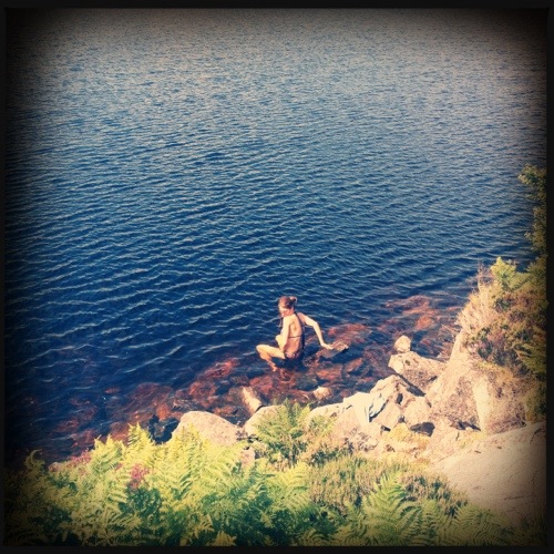 For the next few hours we’ve steered our van through the wilderness of the north with stunning views. Such a lot of movements made us hungry, so, we’ve been looking for an accurate lunch site, which we’ve found aside a nice Loch. Bettina took the change of the warm and sunny Scottish summer and went for her second swim today and after eating we’ve had a sunbath and nap.