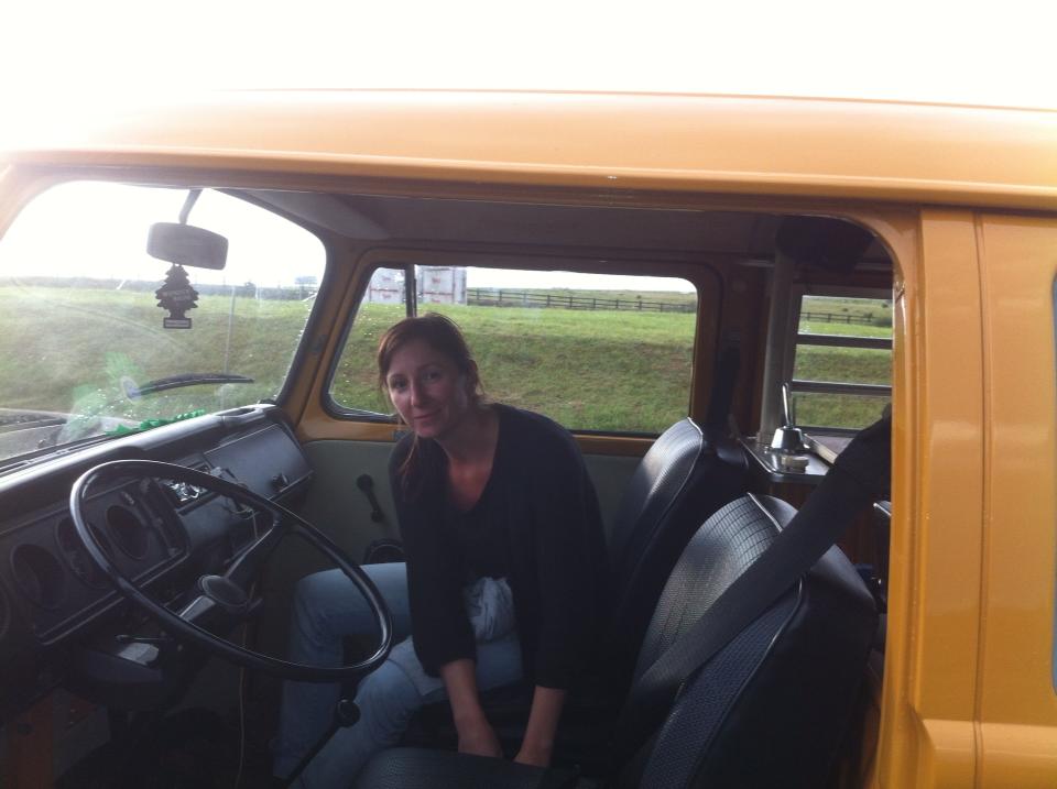 Waking on the Thursday to the pitter patter of rain on the roof of the bus we took the decision to drive over to Bridport and the nearby West Bay, planning a cheeky photo of my Westy by the sign for the town ‘West Bay’ and a days fishing on the Quay. But after fighting through traffic all the way to Bridport, we found the road to West Bay closed due to a serious road traffic accident, and had to head away in the opposite direction rather than fight our way back through Bridport. Before we knew it we were on the road to Honiton and had past the county sign for Devon, and seeing we were not booked in to camp anywhere that night and feeling like free spirits we headed into Devon, then Somerset, and back into Devon again, sticking to country lanes and enjoying the drive and the sights of the English countryside. Stopped for Lunch and Sabine enjoyed her first ever plate of Mussels.