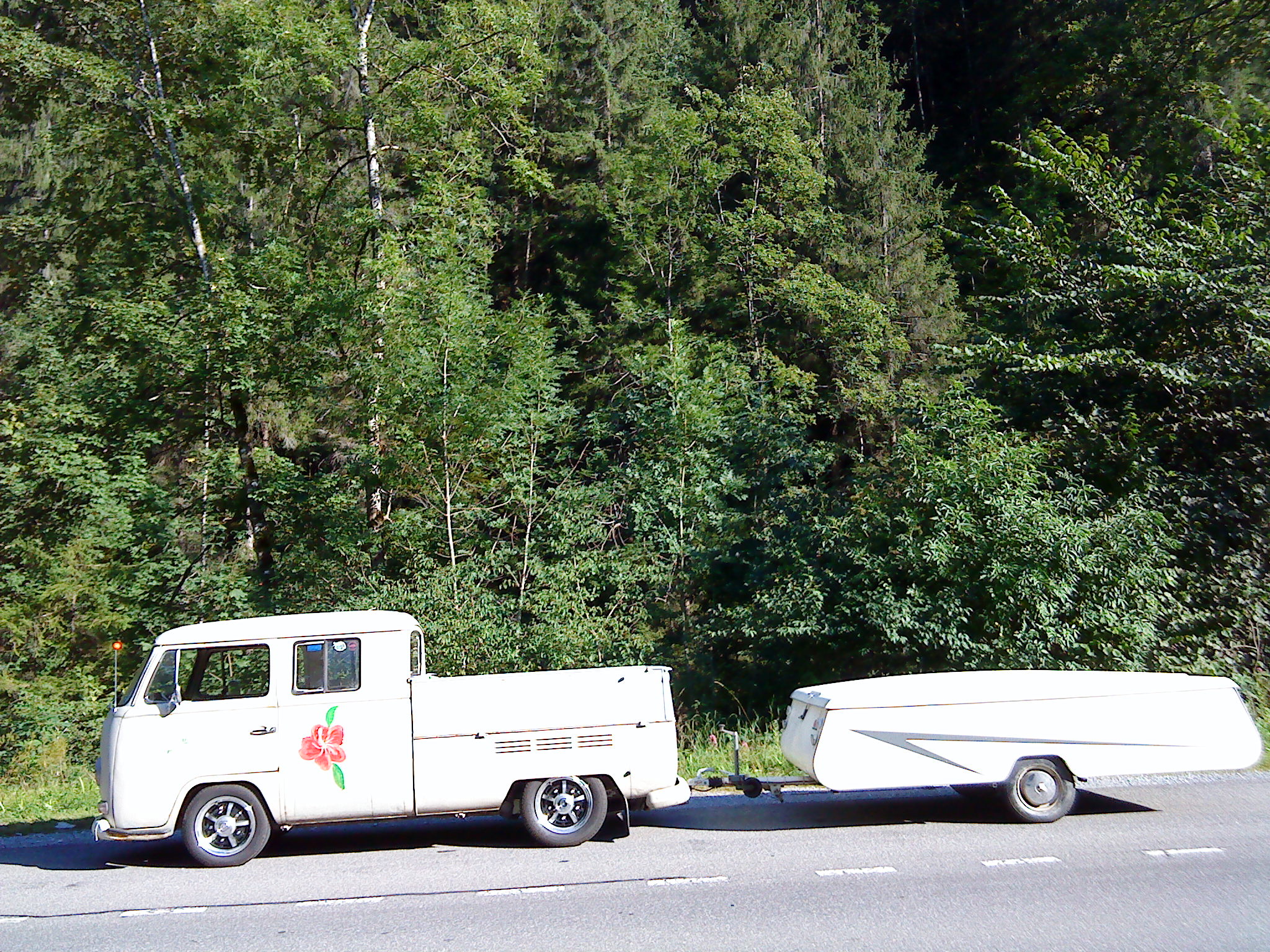 this year they had choosen a better combination for our trip, a ’68 crewcab with a ’73 paradiso trailertent.