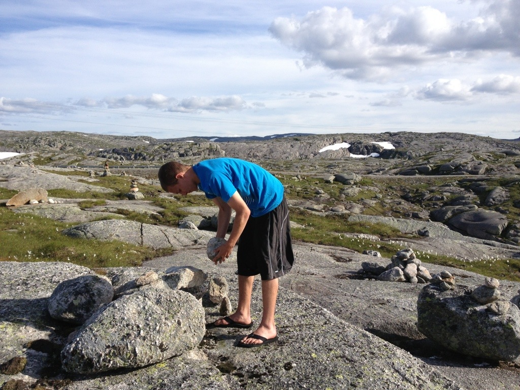 Our today’s goal was the fiell around Lysebotn, a very empty and rocky piece of land with dozen’s of sheep. To get there we’ve kept on the 355 Krossli, where we’ve turned left onto the 38 direction Dalen to take the 45 to Setesdal, which we left at Nomeland after buying some food and get petrol in Valle.