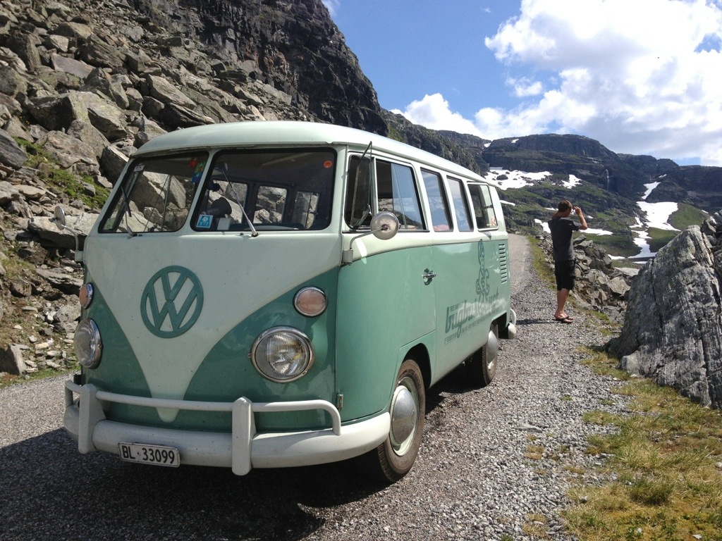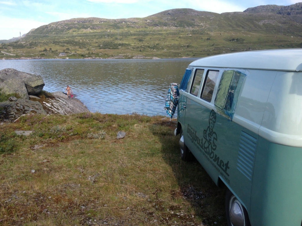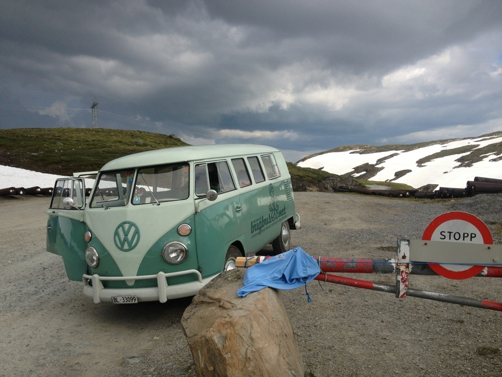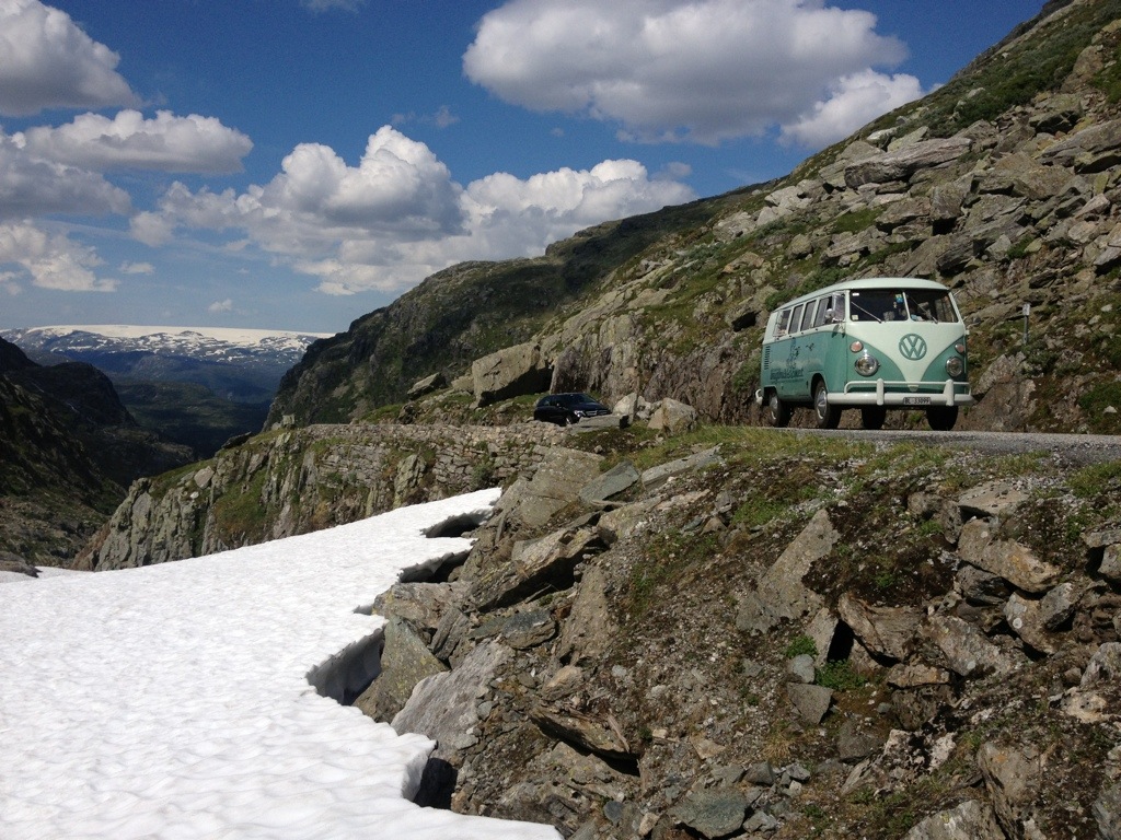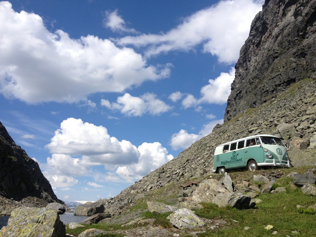 After getting out of the valley, we’ve found us back on the 13 near Vinjar, where we’ve stopped to get petrol, some Brinbærer (raspberries) and wienerbrødz (a common and delicious biscuit with vanilla cream). We’ve kept following the 13 up to Røldals Fjell (13/E134).