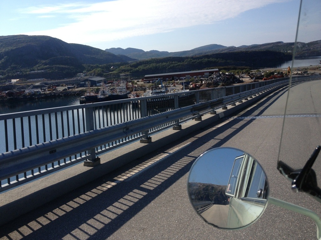 After passing the elegant and steep bridge to Stokkøya – which was built that way, cause of the passing “Hurtigruten” Ships – we’ve soon seen the new bridge to Linesøya that connects the two islands since October 2011. On Linesøya we’ve chosen by hazard the road turned right on the first crossing. It led us after several bends to a dead, but very nice ending.