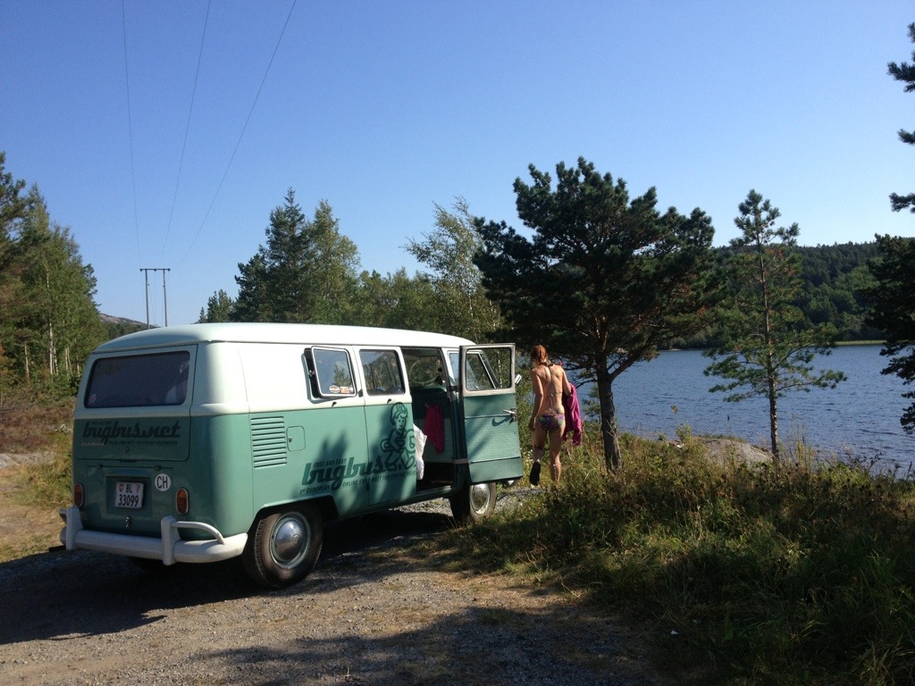 We’ve woken up early on that unexpected bright day with the very cool news from Bettina, that she free of headache and neck pain since sevral days – awsome. Our today’s goal was taking the ferry at Brekstad and going on to the island of Hitra. On our way to Åfjord, we’ve suddenly discovered a very nice spot directly at a small lake.