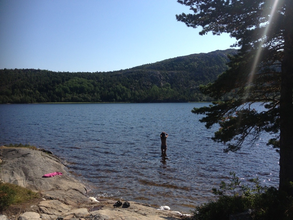 As the weather was much warmer than expected we’ve decided to have a swim. Finally this swim lasted much longer as expected. We’ve decided to cancel our plans and going back to the beach coffee at Hosen and exploring the two islands of Stokkøya and Linesøya.