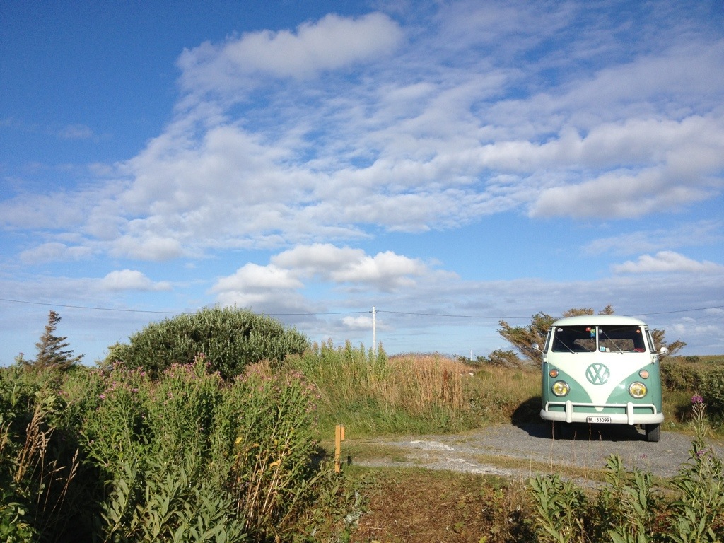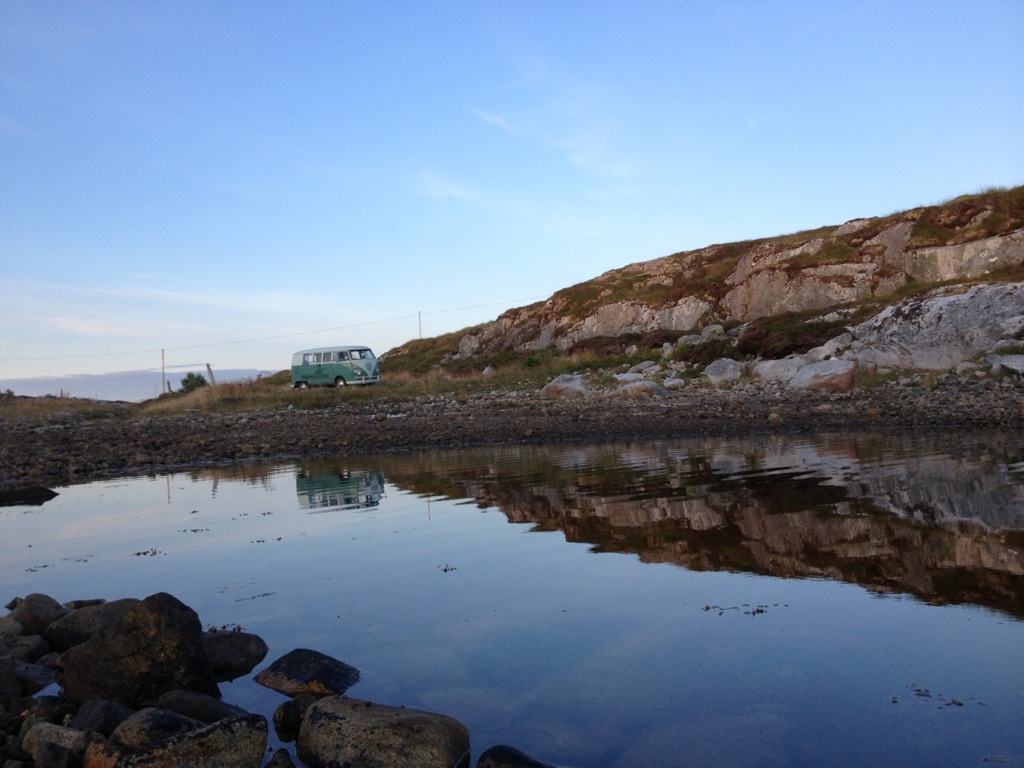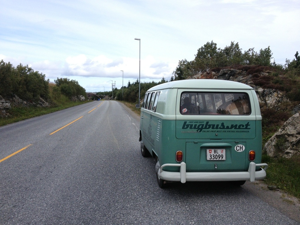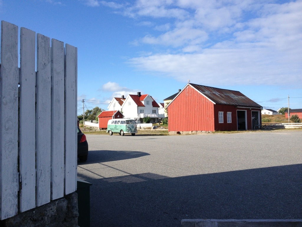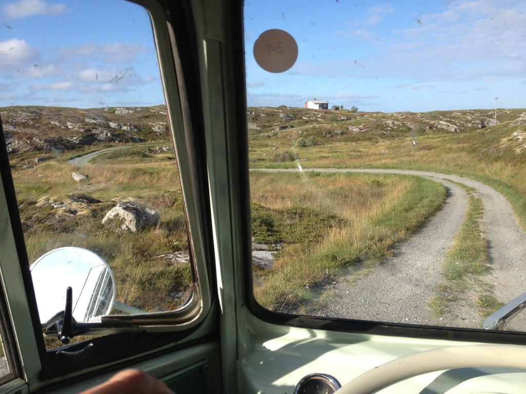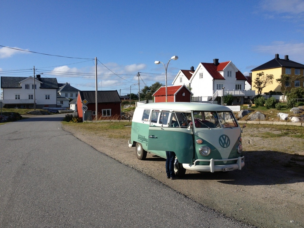 When we’ve arrived a Titran, we were immediately asked about the bus by a guy who owned an ’57 Oval. As we’ve realized during the ride, that we will be confronted, with the same problem to find a spot for the night as on Hitra, I’ve tried to find out, if he knows a good spot. Unfortunately not, even if he offered to stay directly at the little harbor. After saying good-bye, we’ve had cake and coffee on the local cafe, before we went on to seak a accurate place to stay.