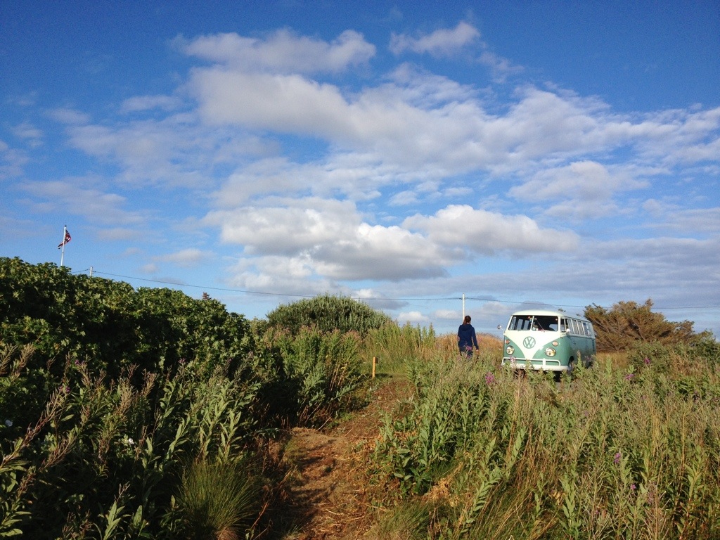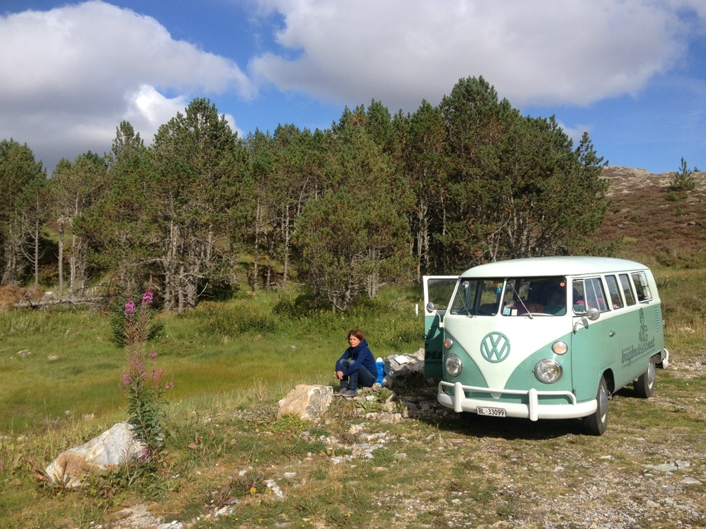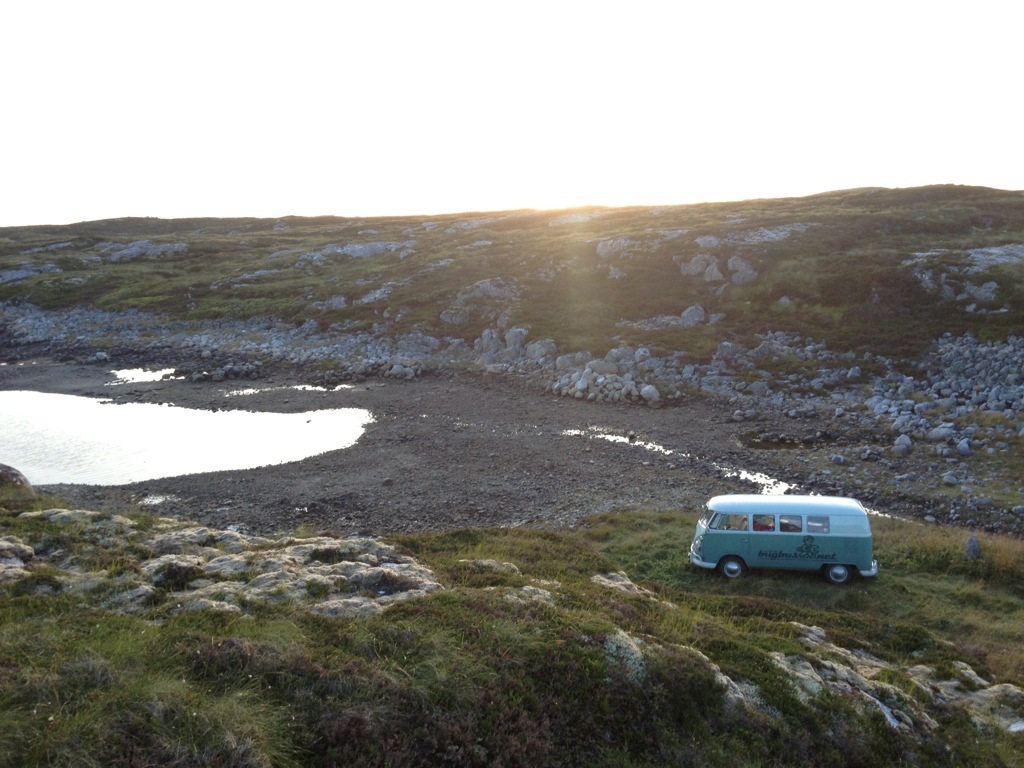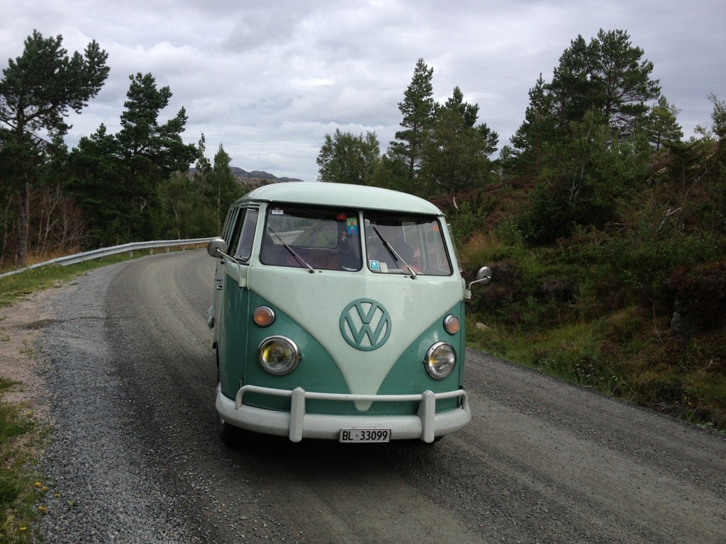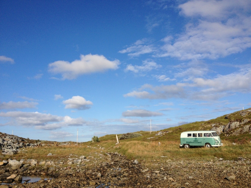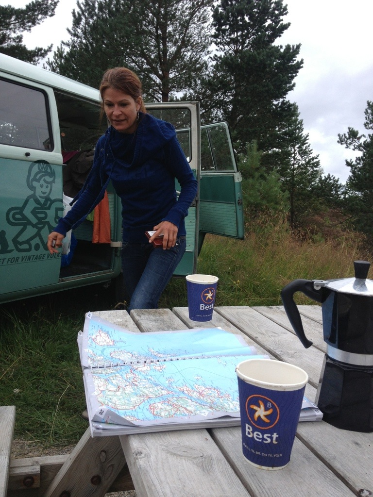 When we’ve arrived a Titran, we were immediately asked about the bus by a guy who owned an ’57 Oval. As we’ve realized during the ride, that we will be confronted, with the same problem to find a spot for the night as on Hitra, I’ve tried to find out, if he knows a good spot. Unfortunately not, even if he offered to stay directly at the little harbor. After saying good-bye, we’ve had cake and coffee on the local cafe, before we went on to seak a accurate place to stay.