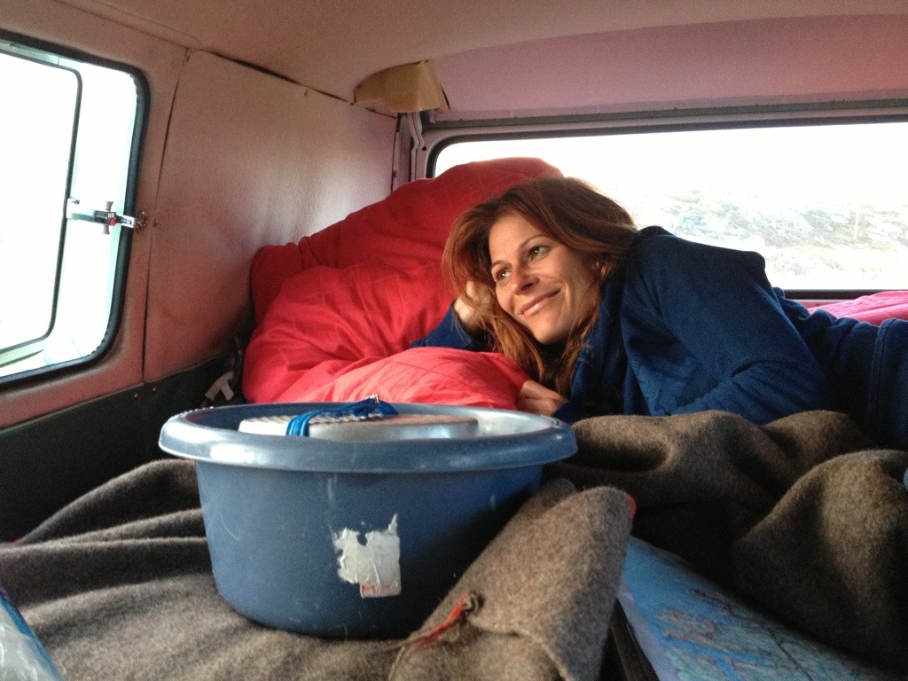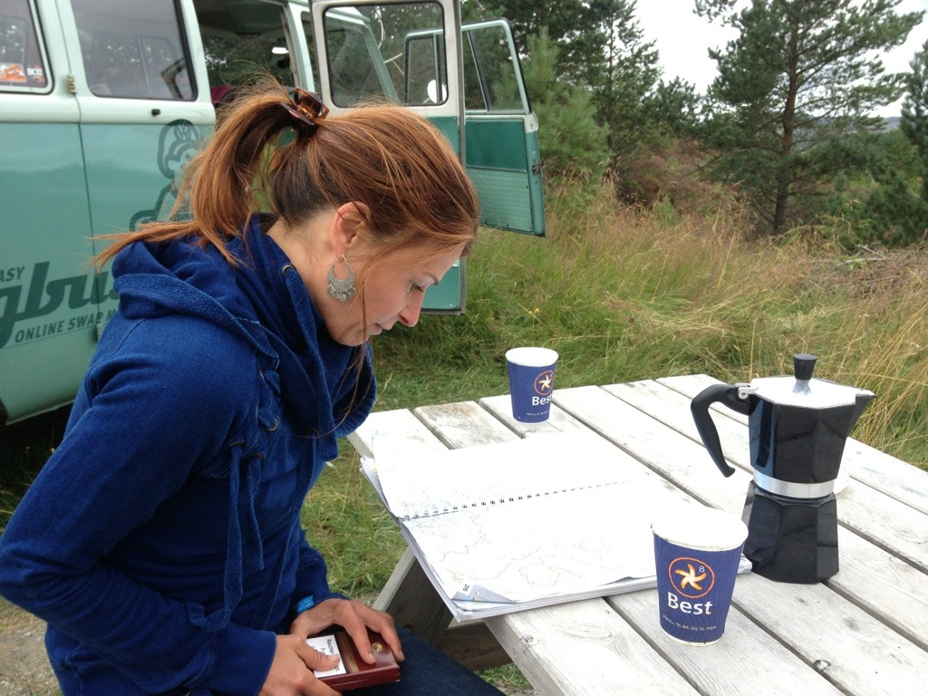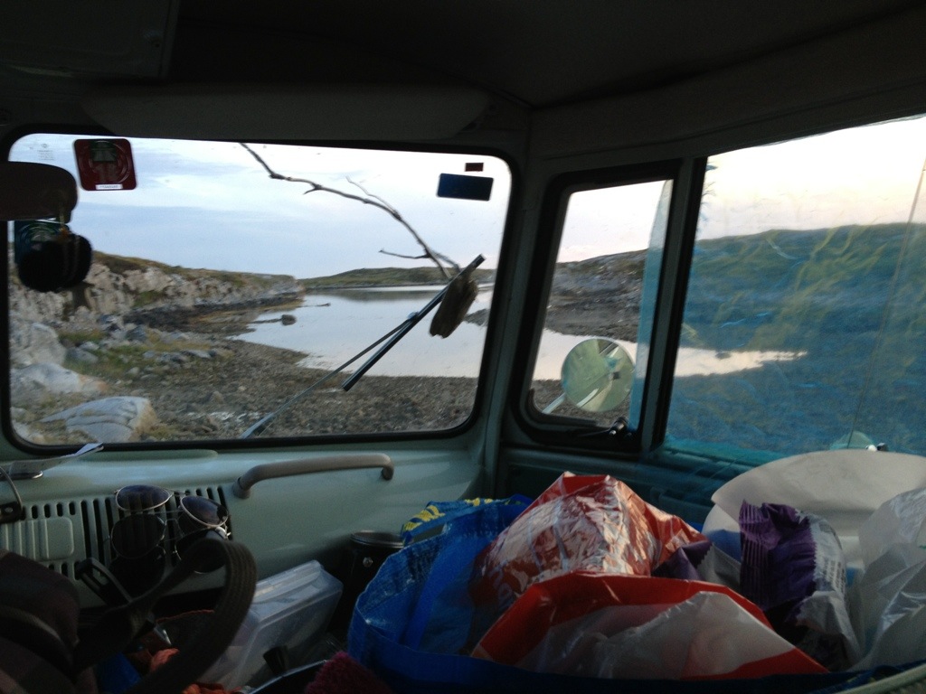 Right when she finished the dishes an I went down the hill from seeking better G3 connection, it has begun to start. Our first Norwegian “knot”* Invasion. we’ve just managed to pack everything into the bus, mount all the fly nets and jump into the bus. The situation has reminded us very to our last years trip in Scotland, with the little difference, that we’ve been prepared this year. Therefore it was quite relaxing to smash the couple of dozens invaders and having a beer while watching the billions of “knots” buzzing around still outside.