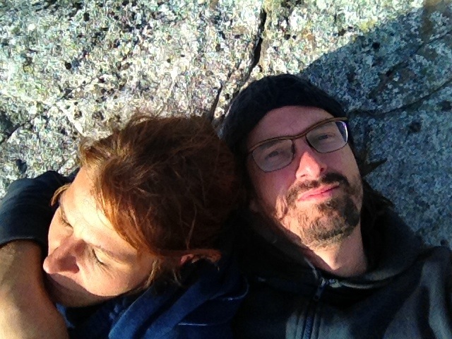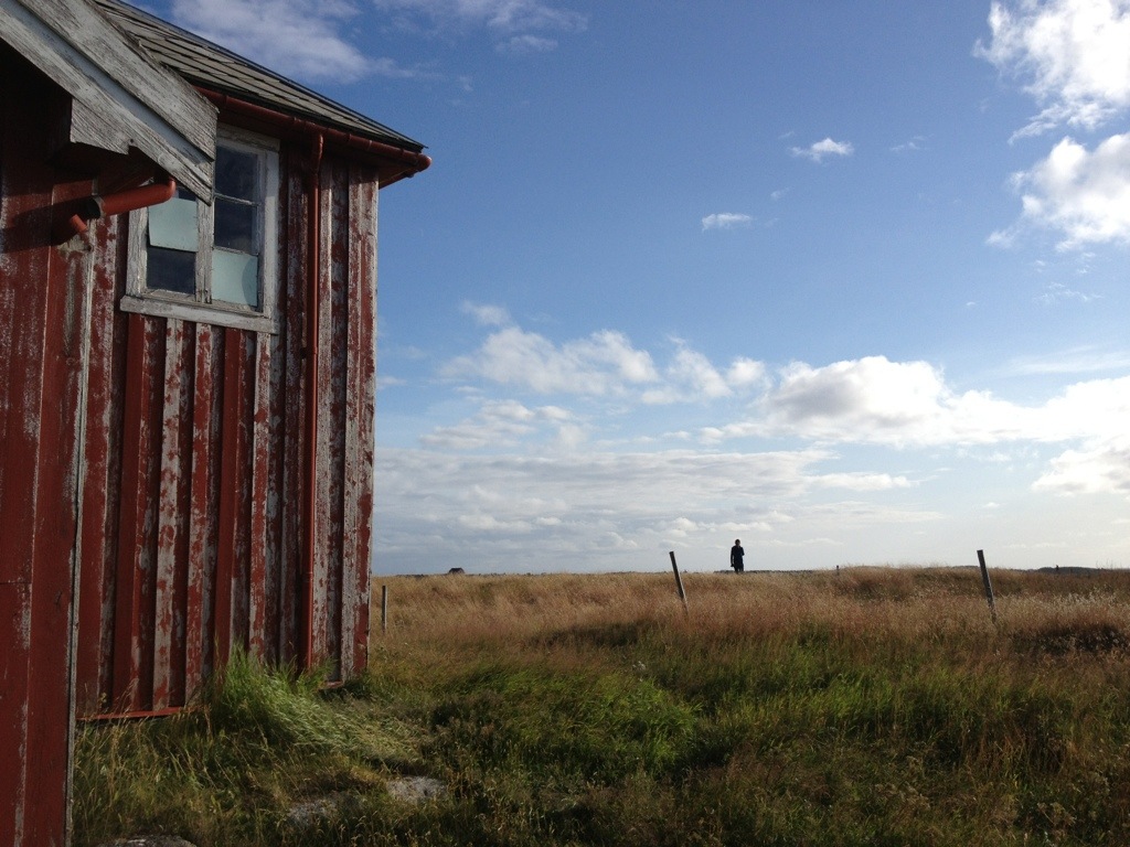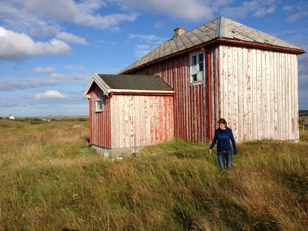 The second track we’ve chosen, led us to the other side of that half island arm while passing the one or other mostly abandoned Houses. The track ended up at a cottage, which was not inhabited at the moment. While I’ve turned the bus, Bettina spotted an marker, that said “Utsikt” and a small drawing of a sunset. So we went on a small excursion onto the hills which cover the shore. It was really worse to go there. We even enhanced the trip to an abandoned and very exposed old house one an other top of a hill.