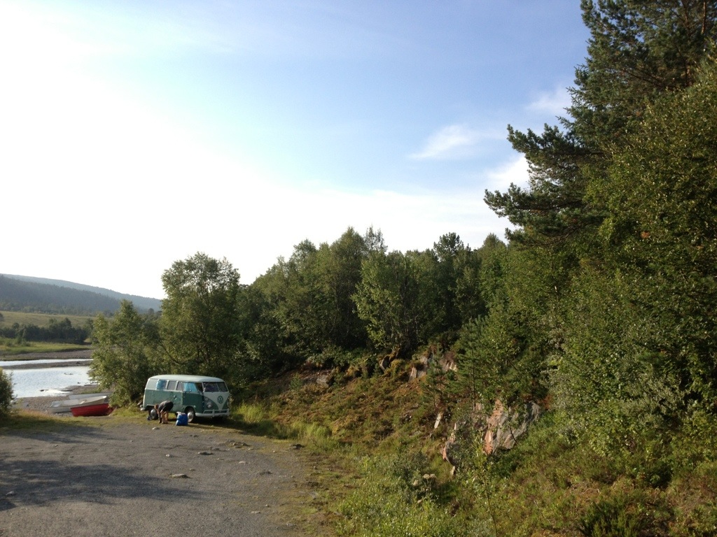 We’ve chosen that spot, cause it was strategical perfect situated – enough faraway from a bigger town on the fjells, what means not too many cottages and people, but close enough to the E6, which will be our road that lead us near Oslo next day.