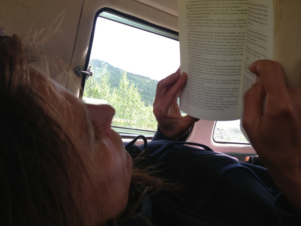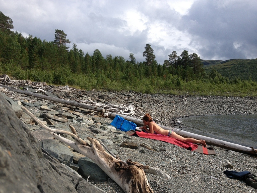 We’ve left early on that bright and sunny morning, cause we’ve wanted to reach two lakes between Berkåk and Oppdal on the fjell. Cause as the weather was still fantastic and warm, especially Bettina longed for a last easy day with reading, sun bathing, swimming and relaxing.