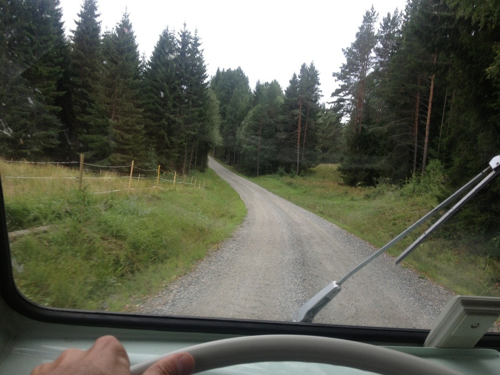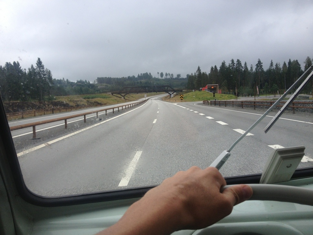 While we’ve explored the junkyard an Austrian T3/T25 Syncro has arrived. It was owned by Birgith and Philippe. We’ve had a cool chat and exchanged some experience of our trips. After saying good byebye, we’ve had a little supper before we’ve left the place in direction Norwegian boarder.