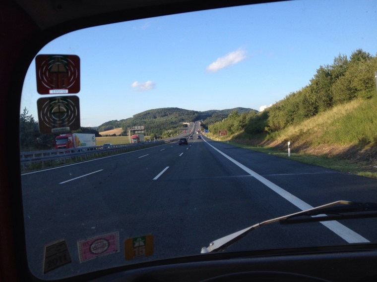 Nach langem ausschlafen an diesem grauen, regnerischem Vormittag und einem kurzes Gespräch mit einer hiesigen älteren Dame, machten wir uns auf den weg Richtung Villingen-Schenningen, wo wir auf die A81 Richung norden fuhren, wir liessen Stuttgard rechts liegen, nahmen die A6 und nach Nürnberg wechselten wir auf die A9.