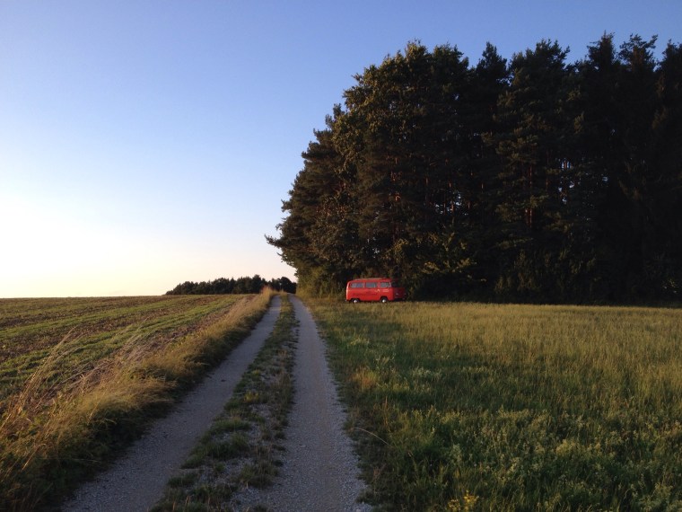 Nach der Verabschiedung fuhren noch einige Kilometer weiter bis kurz vor Pegnitz, wo wir die Autobahn, auf der Suche nach einem Übernachtungsplatz verliessen – wir sind in der Fränkischen Schweiz angekommen. Nach nur wenigen Kilometern, aber etlichen Kurven steuerten wir auf eine Naturstrasse, welche uns an einen super Platz brachte – im absoluten Nirgendwo.