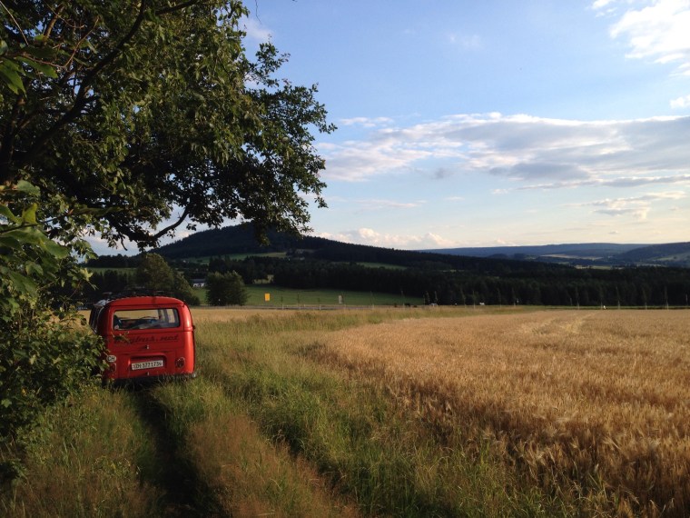 Weiter gings auf kleinen Strassen tiefer ins Erzgebirge entlang der tschechische Grenze auf den Fichtelberg einen hiesigen Skiresort auf gut 1000m. Wir folgten ab Oberwiesental dem Verlauf der Fichtelberg-Schmalspurbahn, welche als Museumsbahn betrieben wird bis Cranzahl. Ein paar Kilometer weiter in Kühberg fanden wir einen netten Standplatz mit weitsicht übers Vogtland.