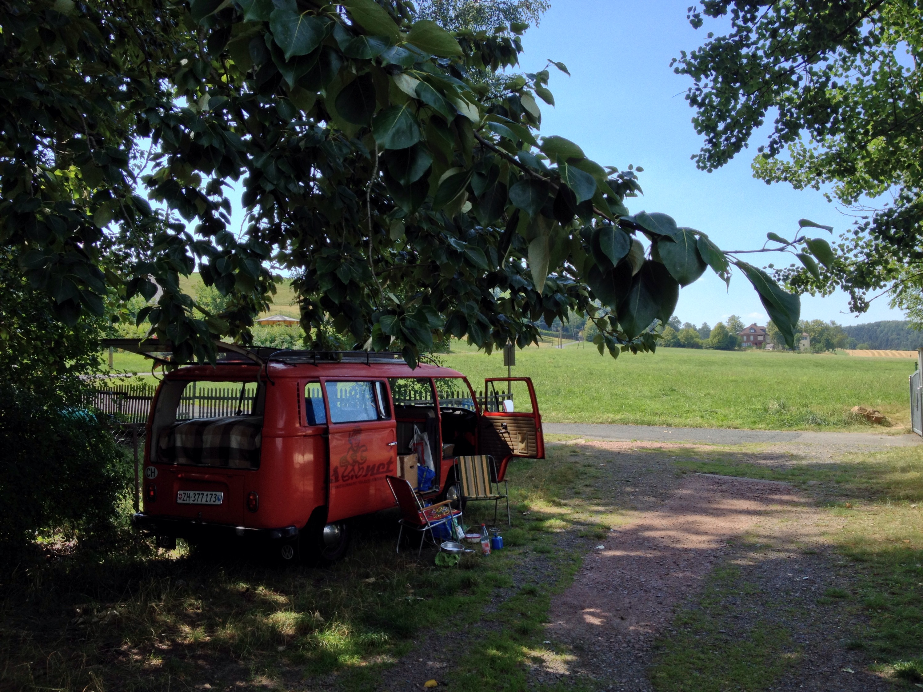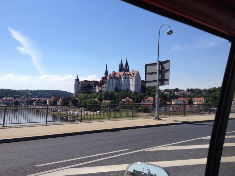 Wir fuhren über Meissen, Richtung Zwickau, wo wir das Horch Museum besuchen wollten. Als wir so überland fuhren und die Temperaturen stiegen und stiegen, drängte sich immer mehr der Wunsch nach einer nassen abkühlung auf. Nach kurzer Konsultation des Strassenatlases, war eine mögliche Stelke ausgemacht und der Bus in die nötigen Strassen gelenkt.